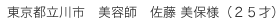 「私は、まだ自分の店舗も持っていない独立志望の美容師でした。 しかし、自分の夢の実現を待ち切れず思い切って購入をしました。そして、早速読ませてもらいました。 結論から言うと、その後すぐに独立してしまったんです。 この方法を知り、たとえ店舗を持っていなくてもお客さんを取れることに気が付きました。 逆を言えば、お店を構えたり、メニューや内装に気を使っただけでは、お客さんはやってこないという現実も知りました。 現在、出張美容室という形ですが、すでに41名の顧客様がいます。 もし、この方法に出会わなかったら、私はたぶんいまだにくすぶっていたと思います。 これからも信じてついていくつもりです。よろしくお願いします。